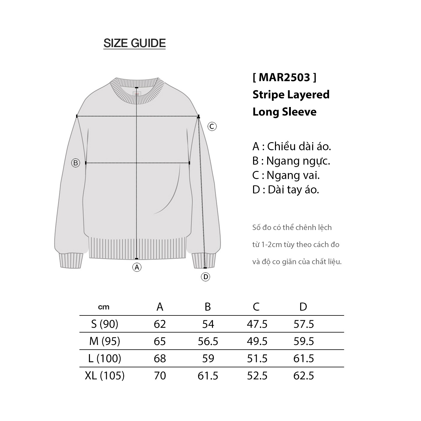 Áo Dài Tay MAR Double Layer Striped (Semi-Overfit) M02AH