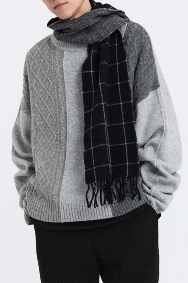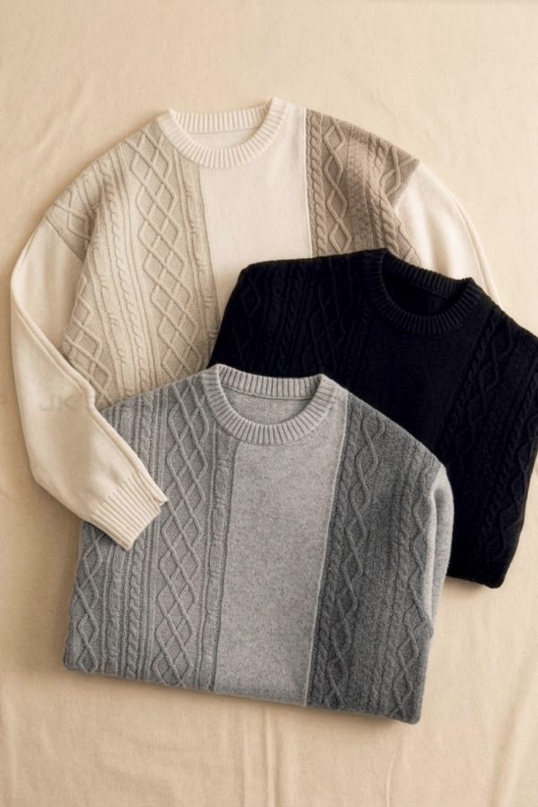 Cable-Knit Color Block Round Neck Sweater