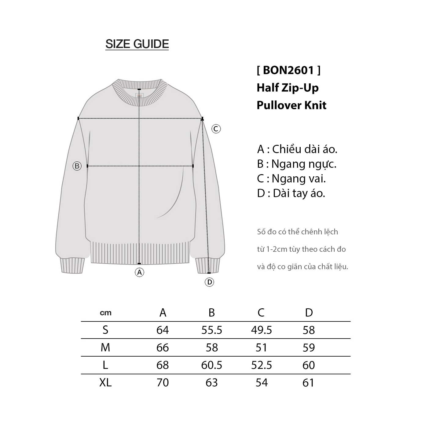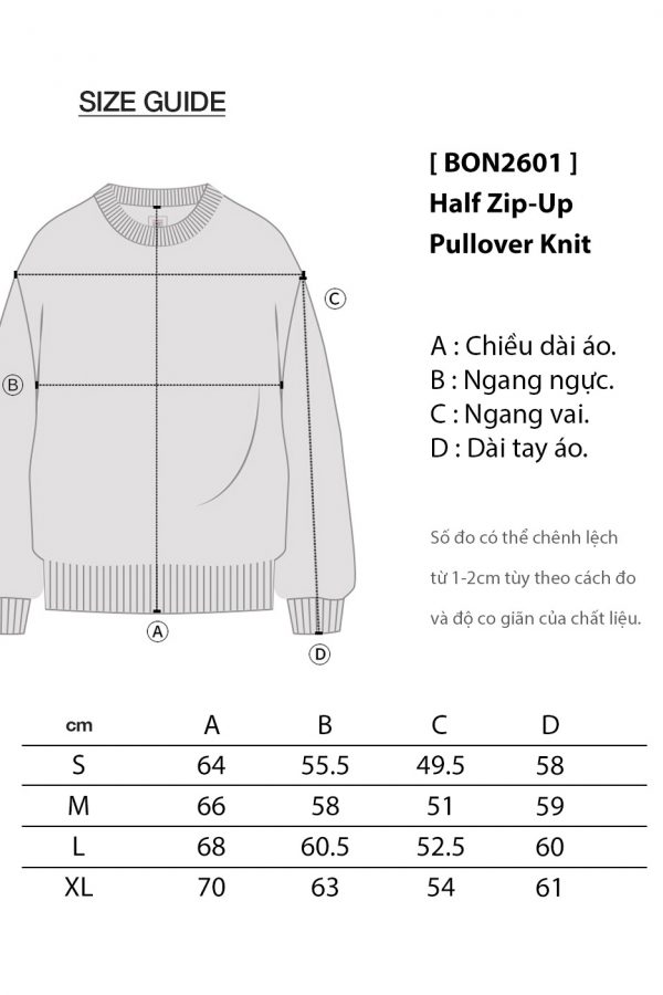 Áo Len Dài Tay BON Half Zip-Up Pullover ( Semi-OverFit )