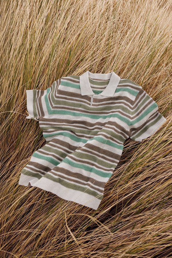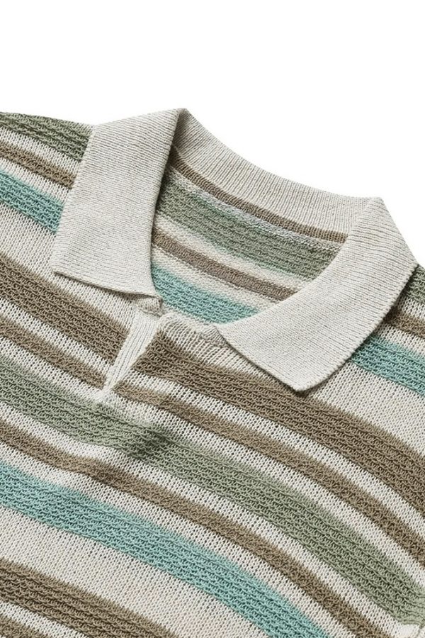 Multi Stripe Open Collar Knit