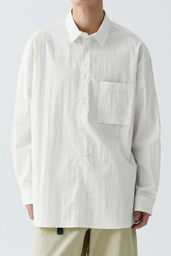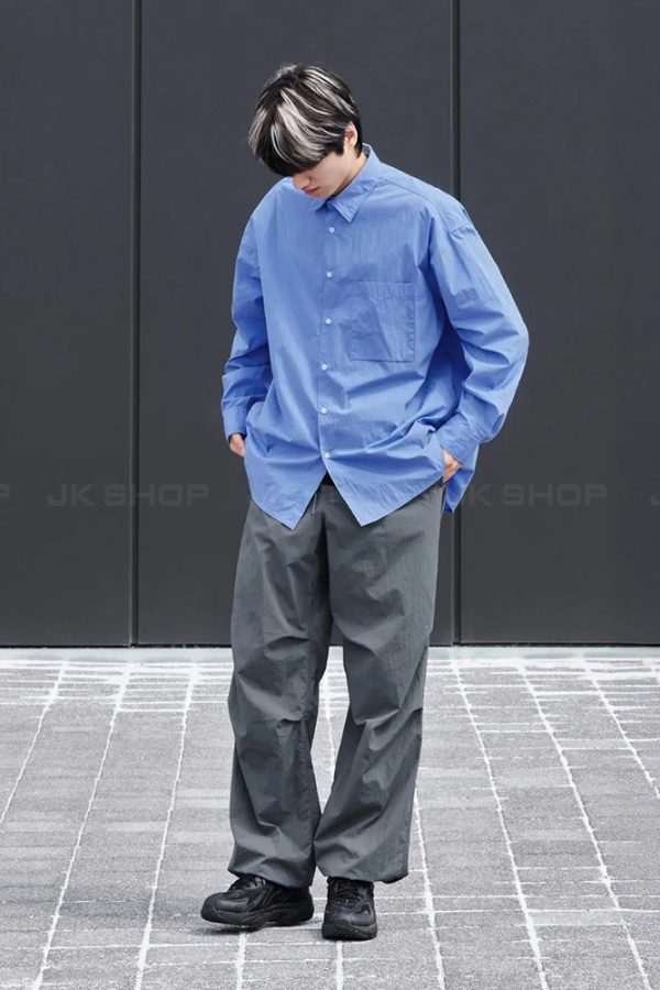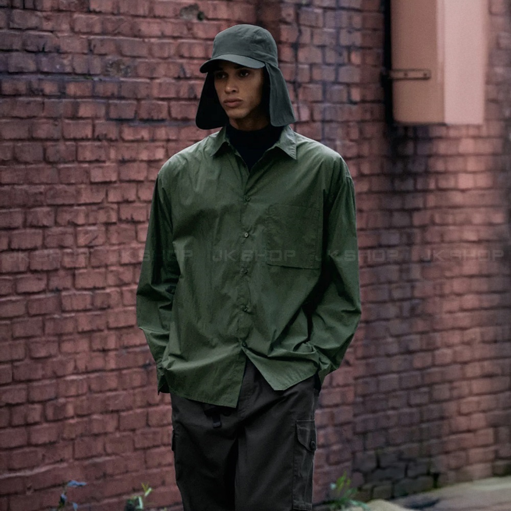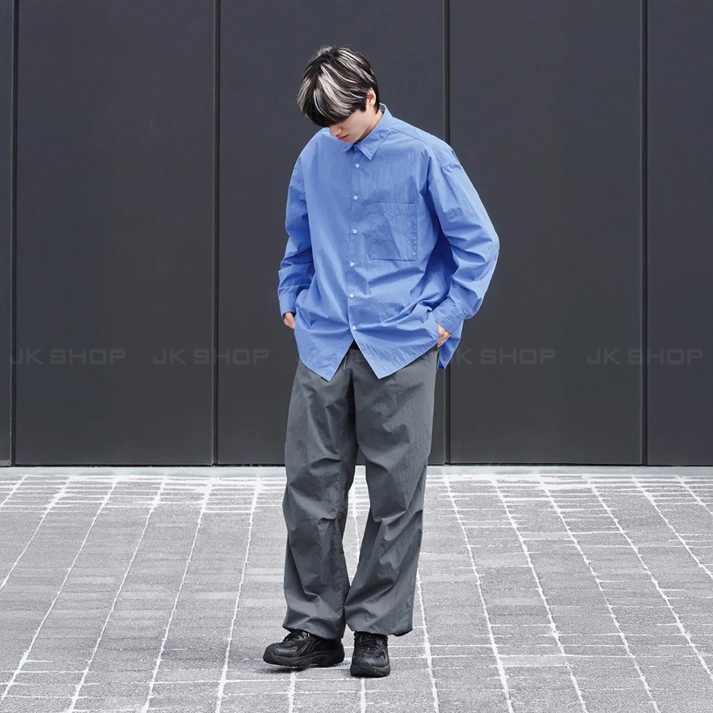 + Chất Liệu vải Nylon pha Cotton tạo hiệu ứng matte lì cực sang, có chút độ nhăn tự nhiên, form rộng phóng khoáng cá tính.