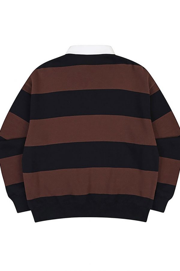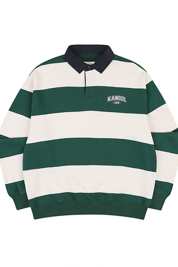 Chuẩn bị cho tủ đồ cuối năm với những đường kẻ sọc ngang, đang lặng lẽ chiếm sóng xu hướng thời trang 😎 College Rugby Sweatshirt 🇰🇷