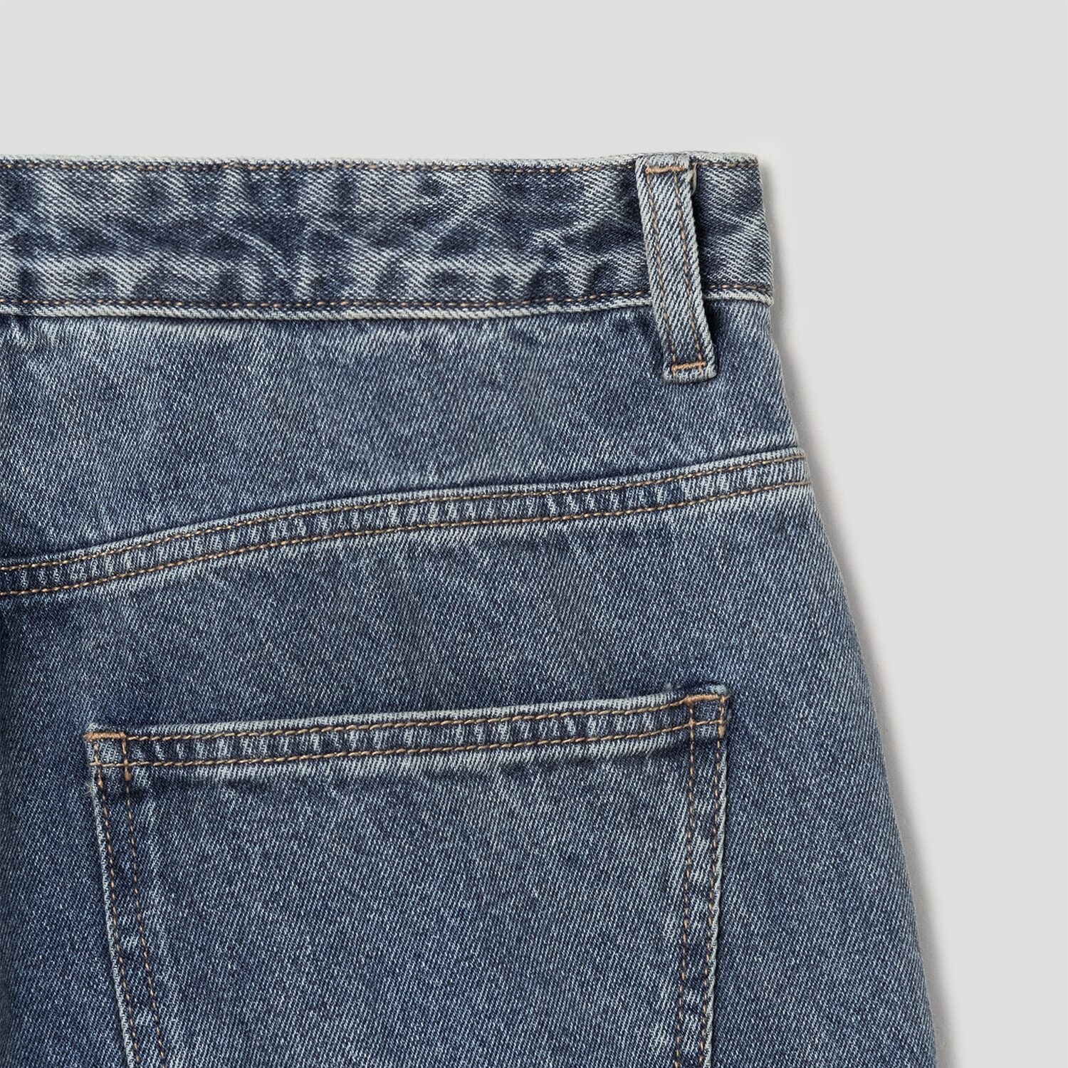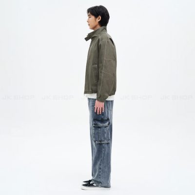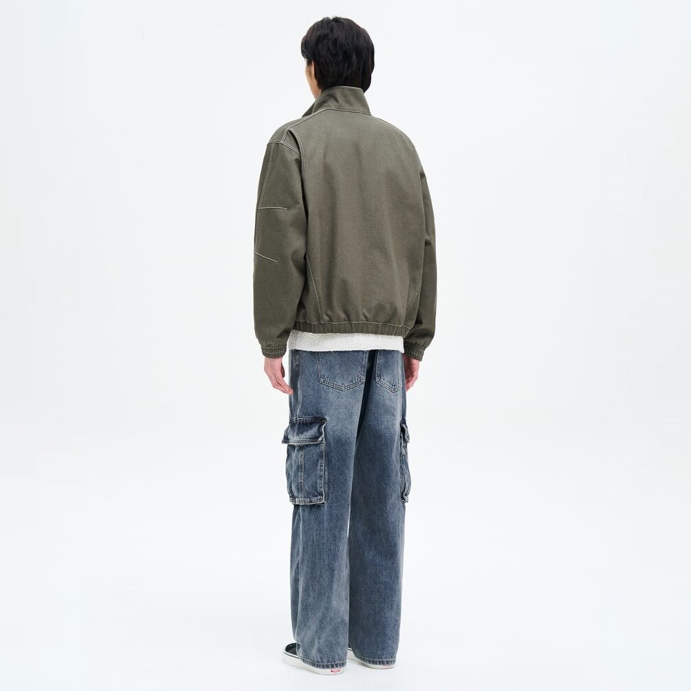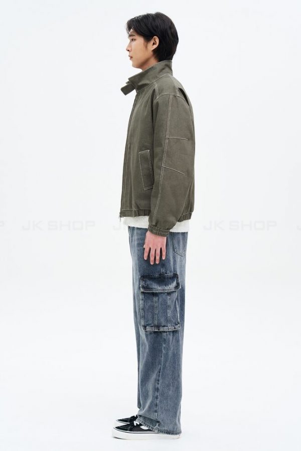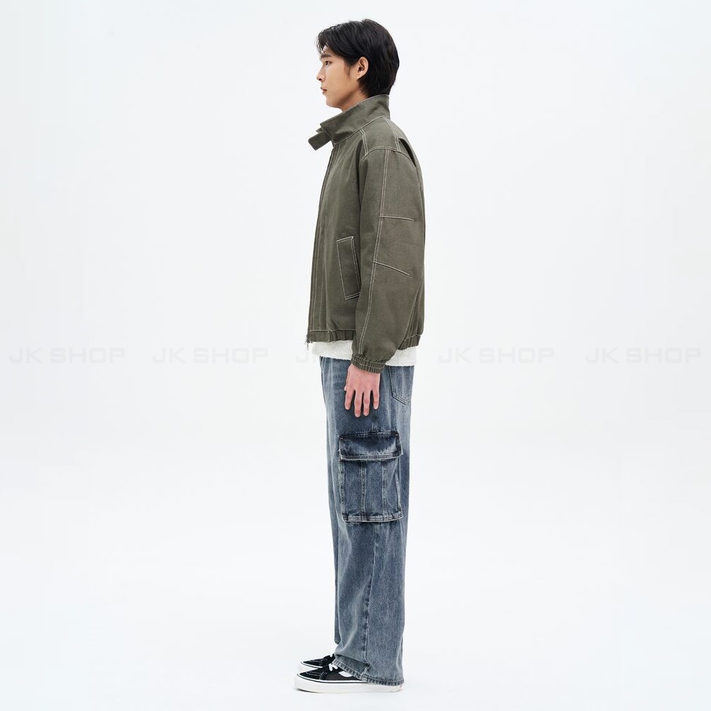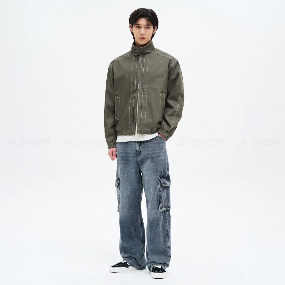 Chất liệu Denim Cotton độ dày dặn cao, mịn, được xử lý bề mặt nhuộm tự nhiên, tạo hiện ứng bụi bặm, cá tính.