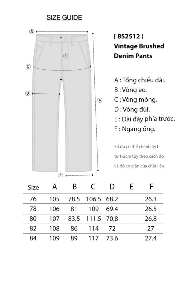 Quần Jeans 8S Vintage Brushed ( Wide Fit ) APTP