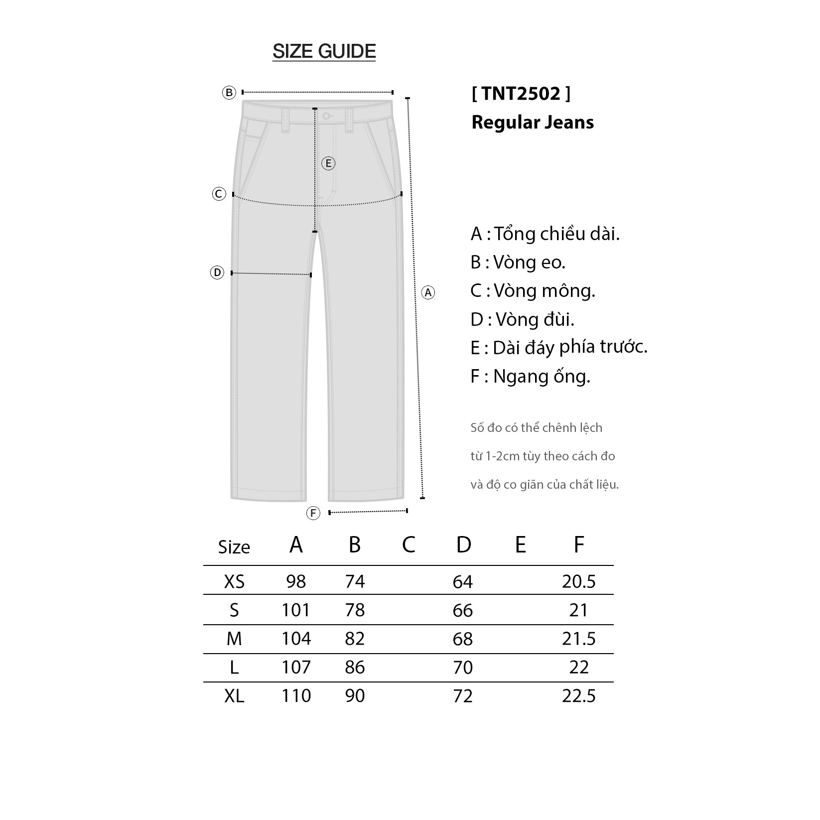 ▪️ Form Regular đùi và ống suông, rộng vừa thoải mái.