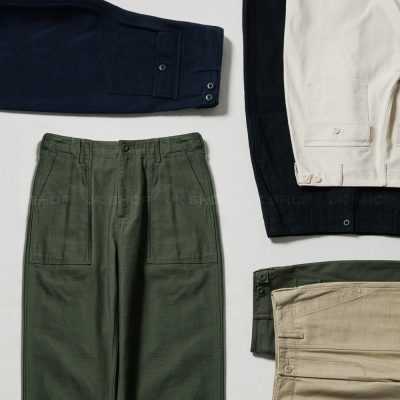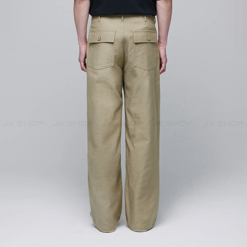 “Wide Replica Fatigue Pants ” tái hiện đầy đủ tính chất của mốt chiếc quần quân đội với bề mặt vải chắc chắn, bền bỉ kết hợp cùng form quần rộng hiện đại.